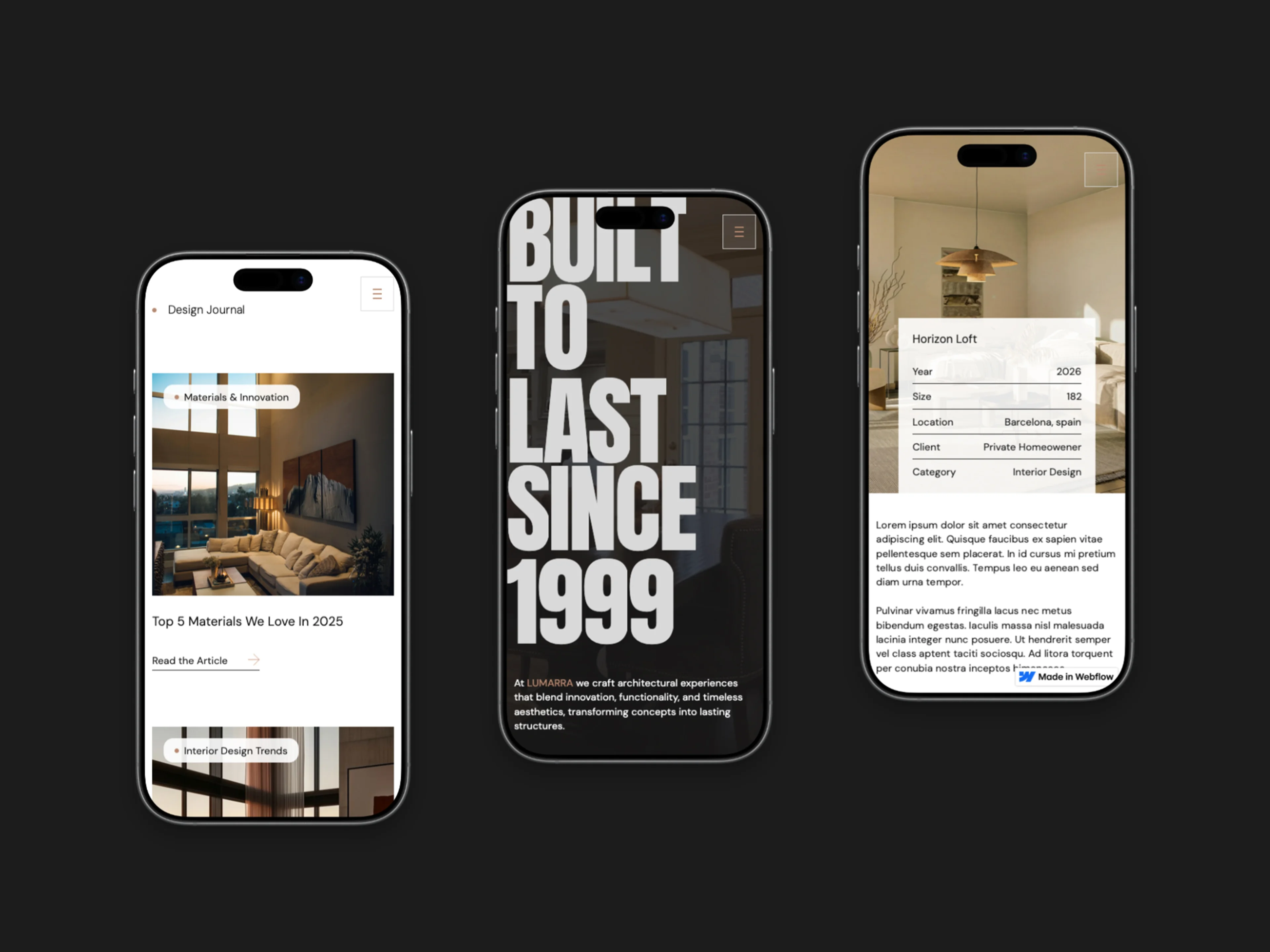 Lumarra is an architecture and interior design template is built to help studios, firms, and creatives showcase their work with clarity and style. Featuring clean layouts, elegant typography, and modern structure, it includes everything you need to present your portfolio, services, and philosophy.